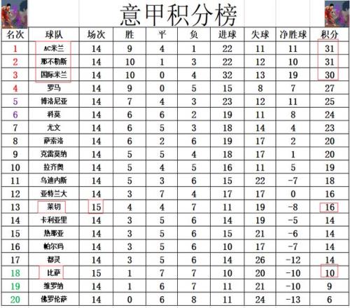 积分榜方面,意甲是目前五大联赛榜首最激烈的,前三的AC米兰,那不勒斯和国米分差就在1分之间,本轮三强将继续展开榜首的争夺。莱切最后阶段破门击败比萨赢得保级大战后,将和比萨的差距拉大到6分,暂时远离了降级区。